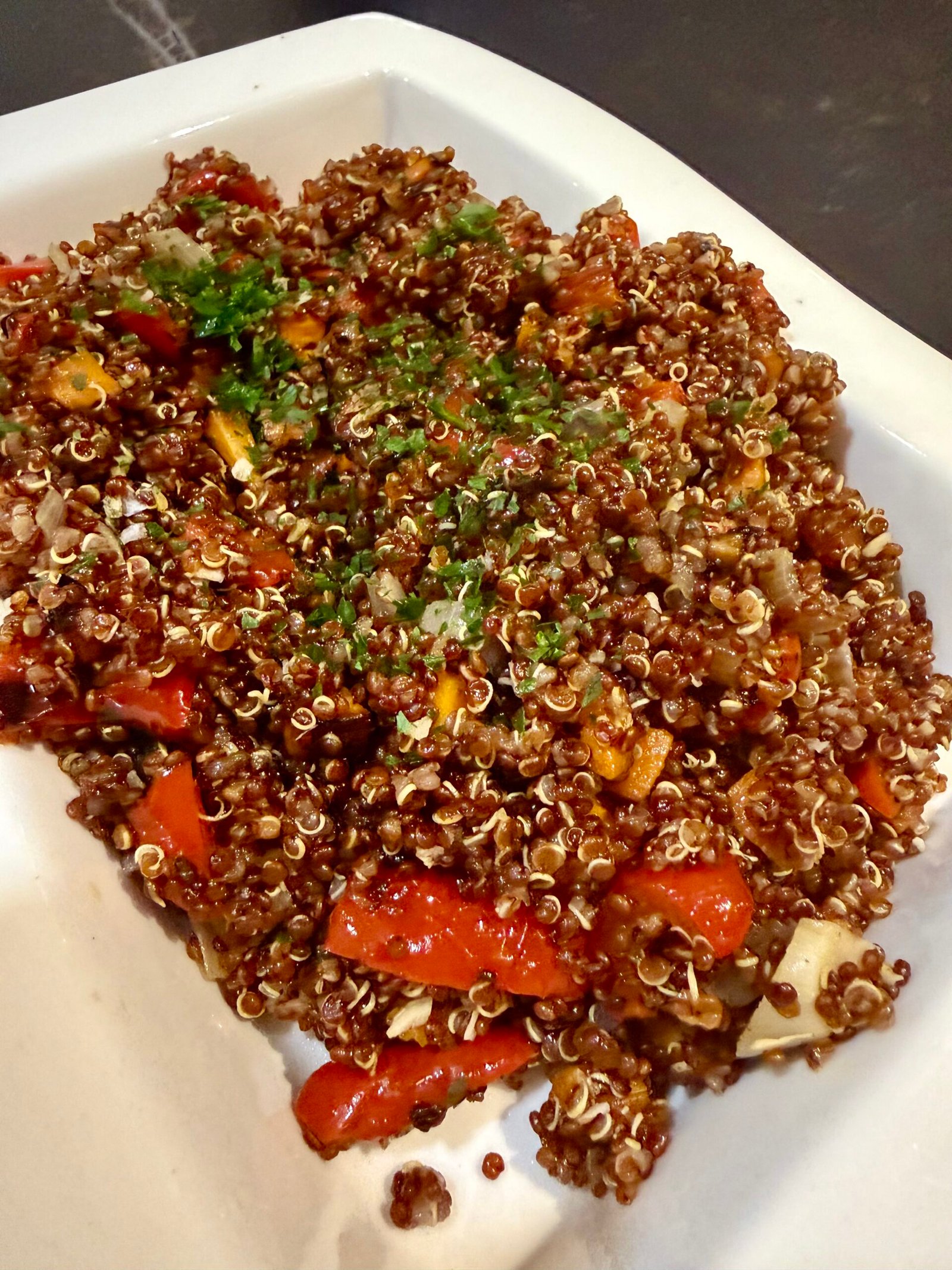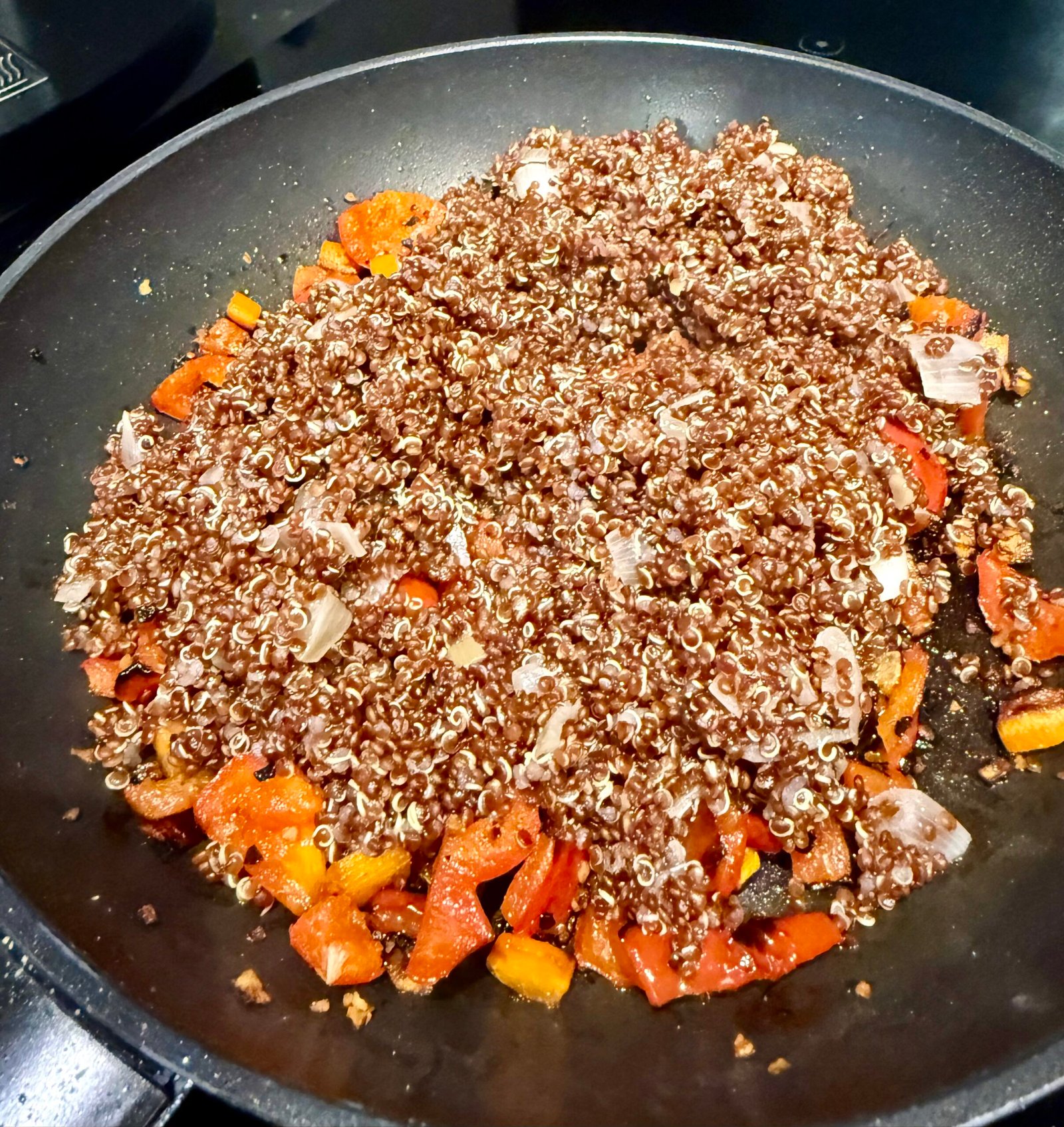 Toast the quinoa in a dry pan for a few minutes until it gives off a nutty aroma.