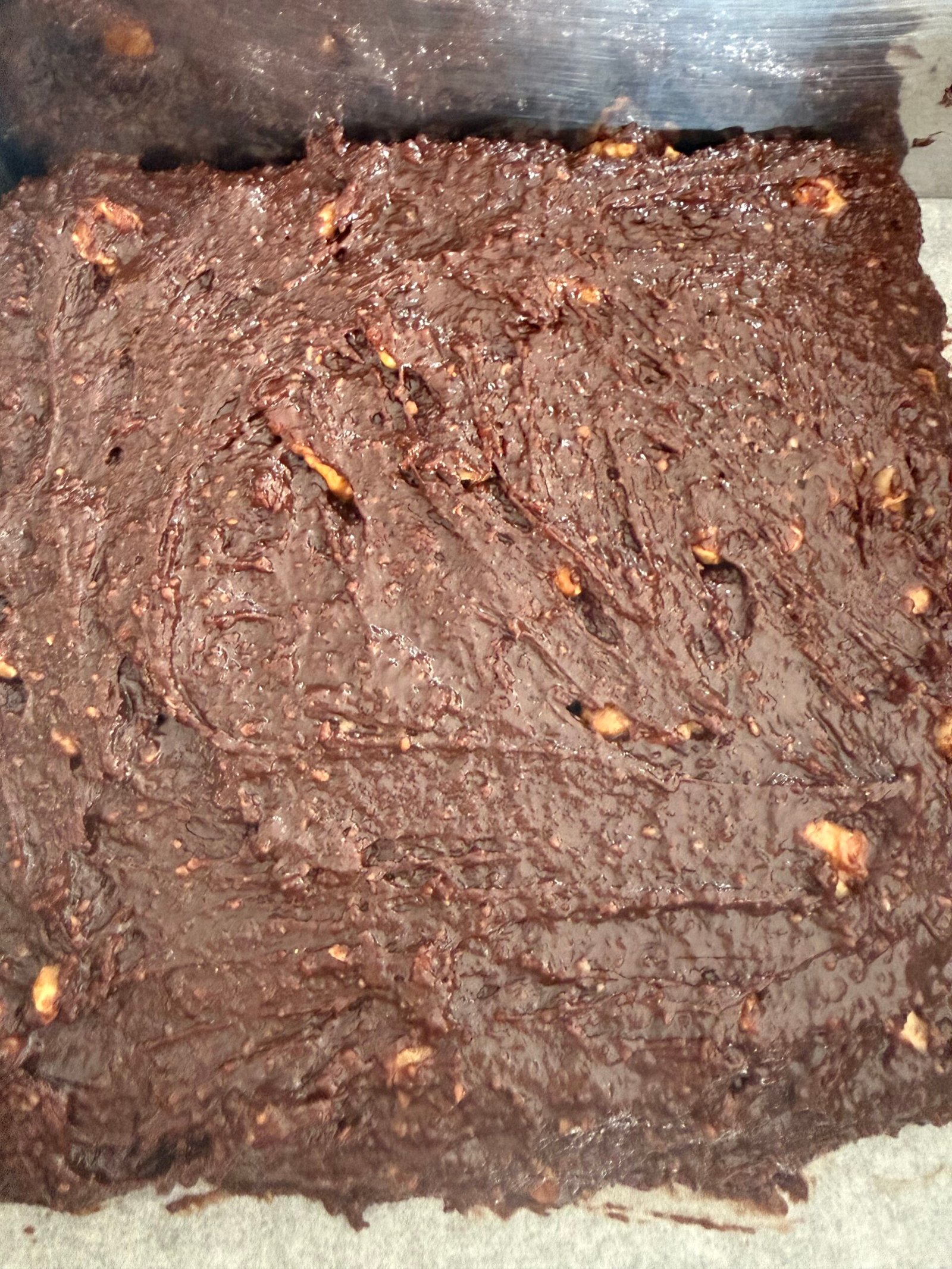 Spread the dough in a square silicone mold or one lined with baking paper.