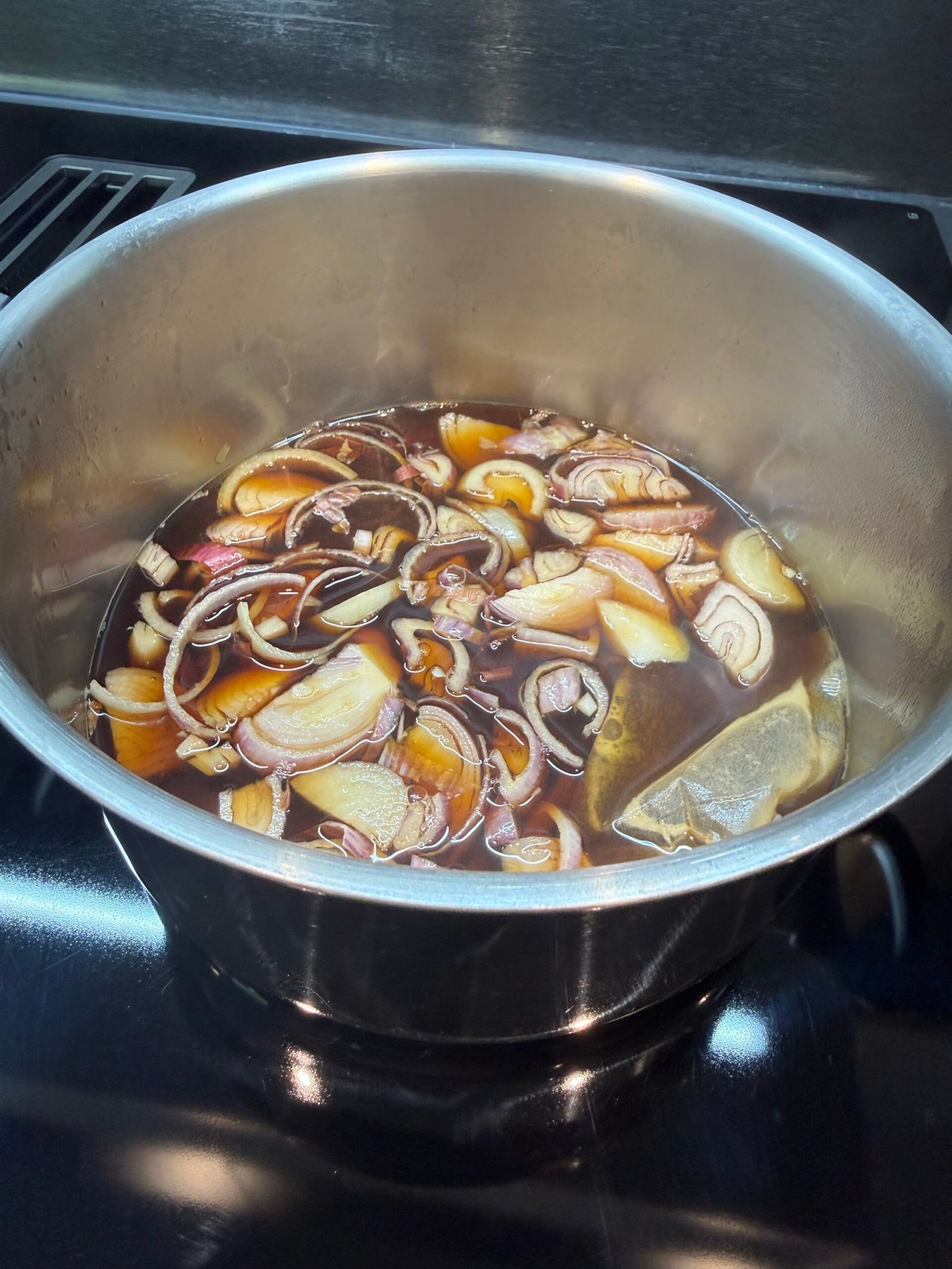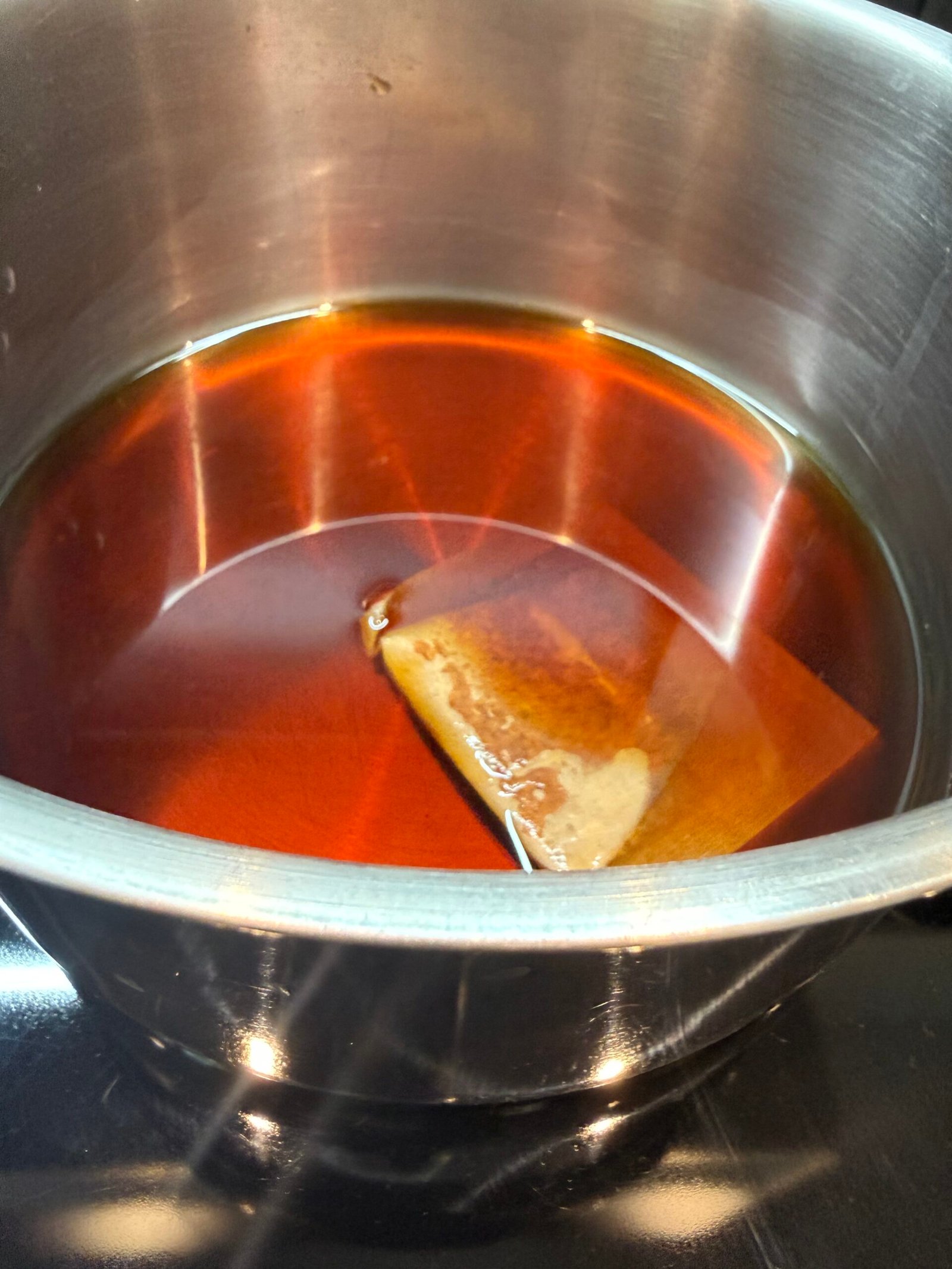 In a saucepan, heat the dashi, tamari or gluten-free soy, mirin and sugar.
