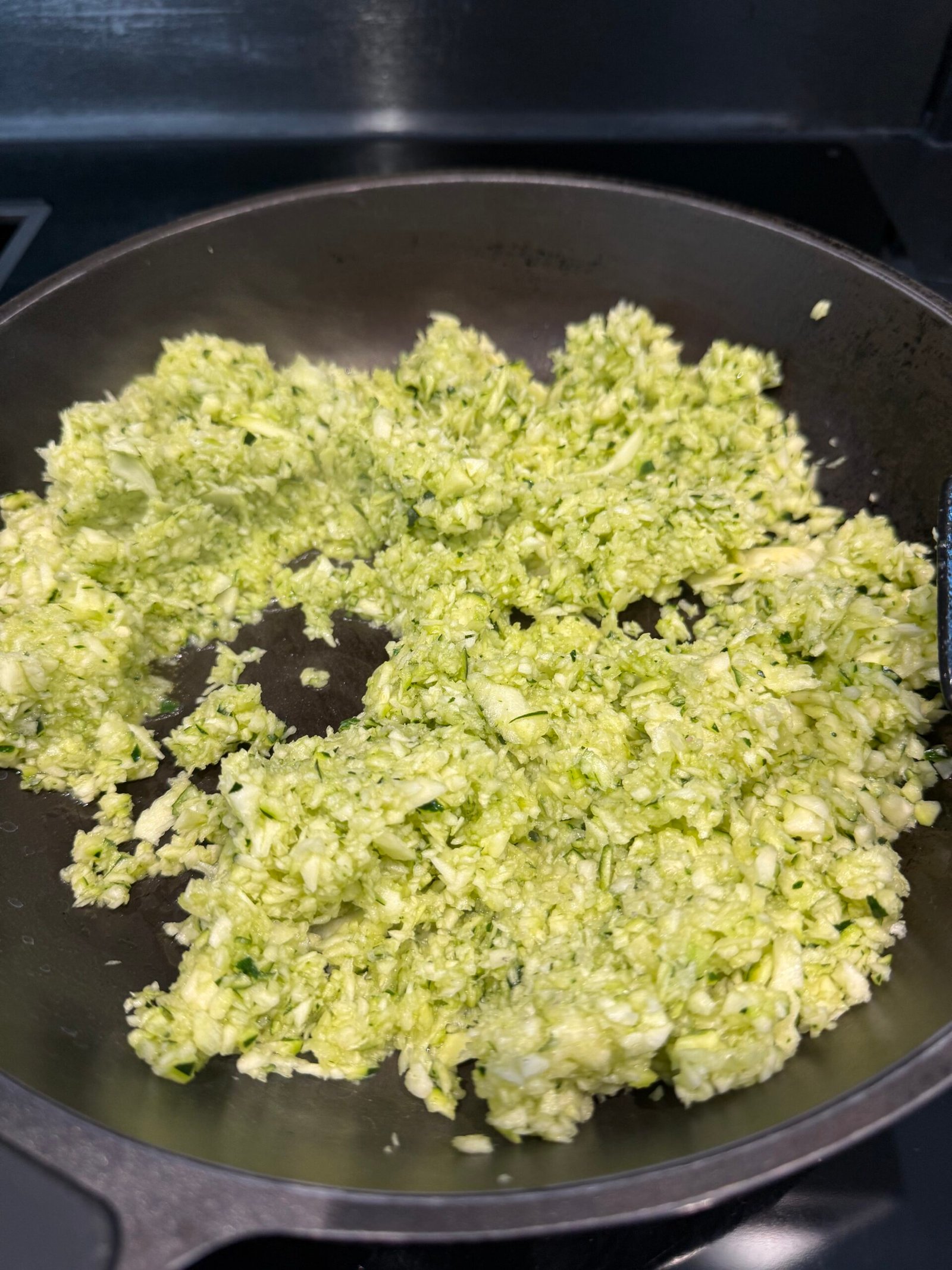 Grate the zucchini and cook them in a little olive oil for about ten minutes.