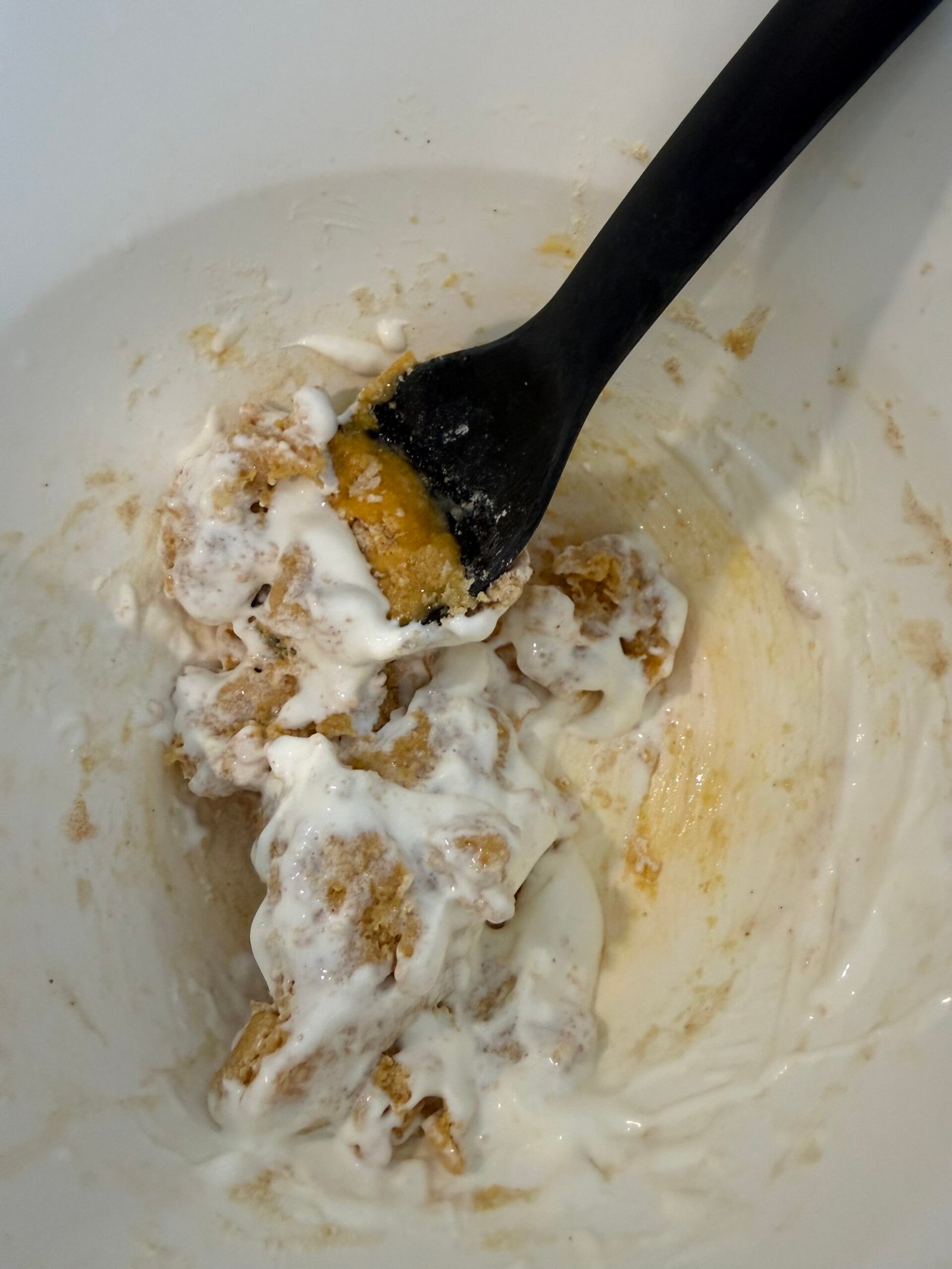 Beat the egg whites until stiff. Gently fold them into the mixture.