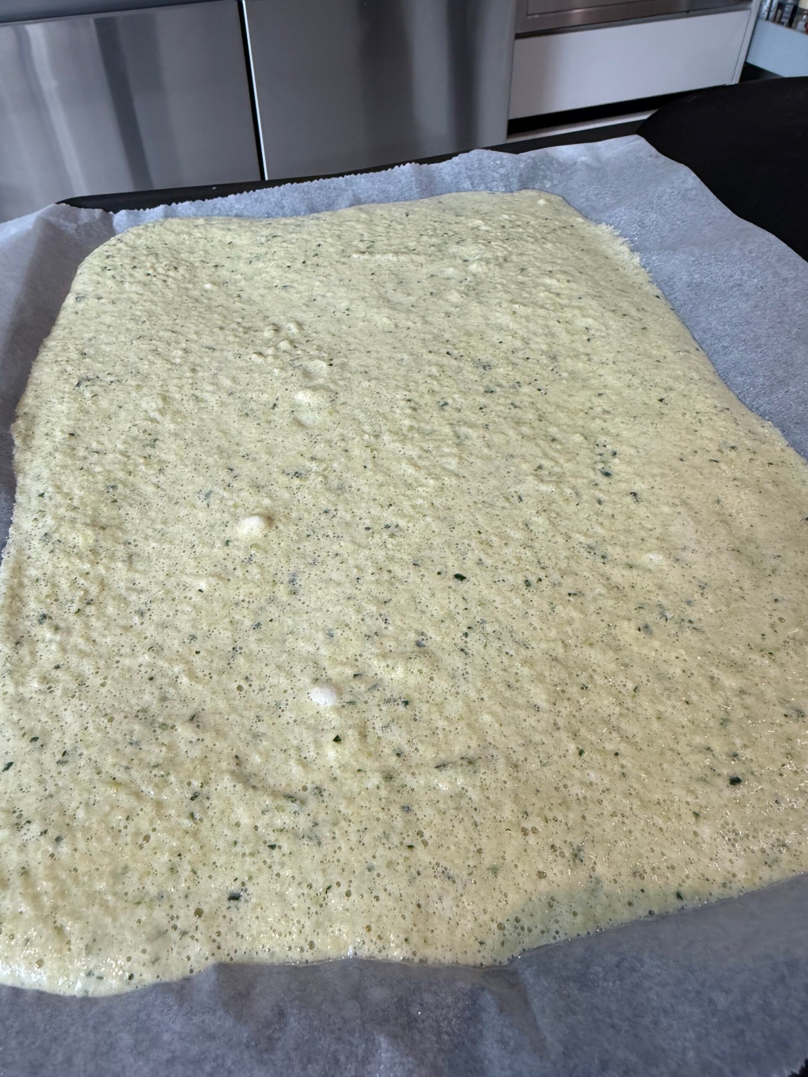 Spread the mixture on a rectangular baking sheet lined with baking paper.