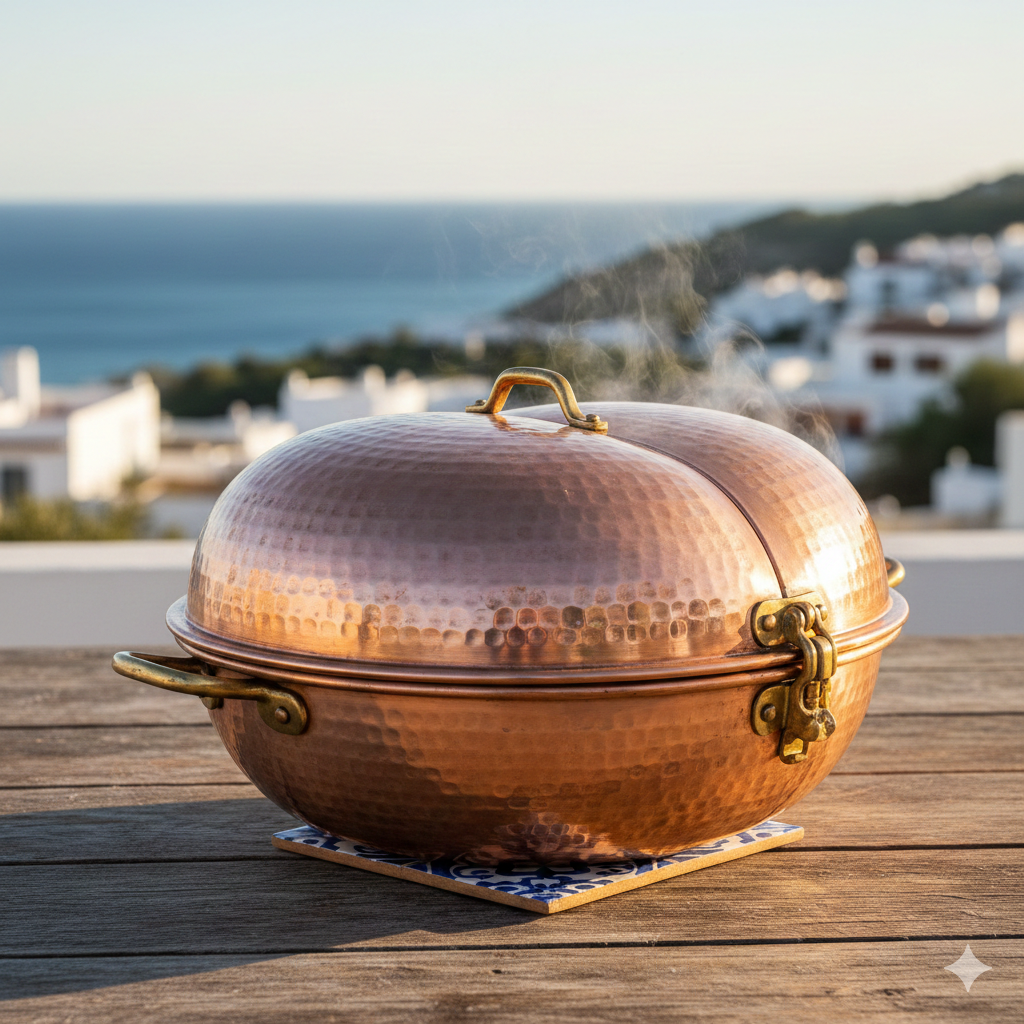Imaginez-vous sur une terrasse ensoleillée de l’Algarve, le bruit des vagues en fond sonore et une odeur enivrante de mer et d’épices qui s’échappe d’un mystérieux récipient en cuivre… Bienvenue dans l’univers de la Cataplana.