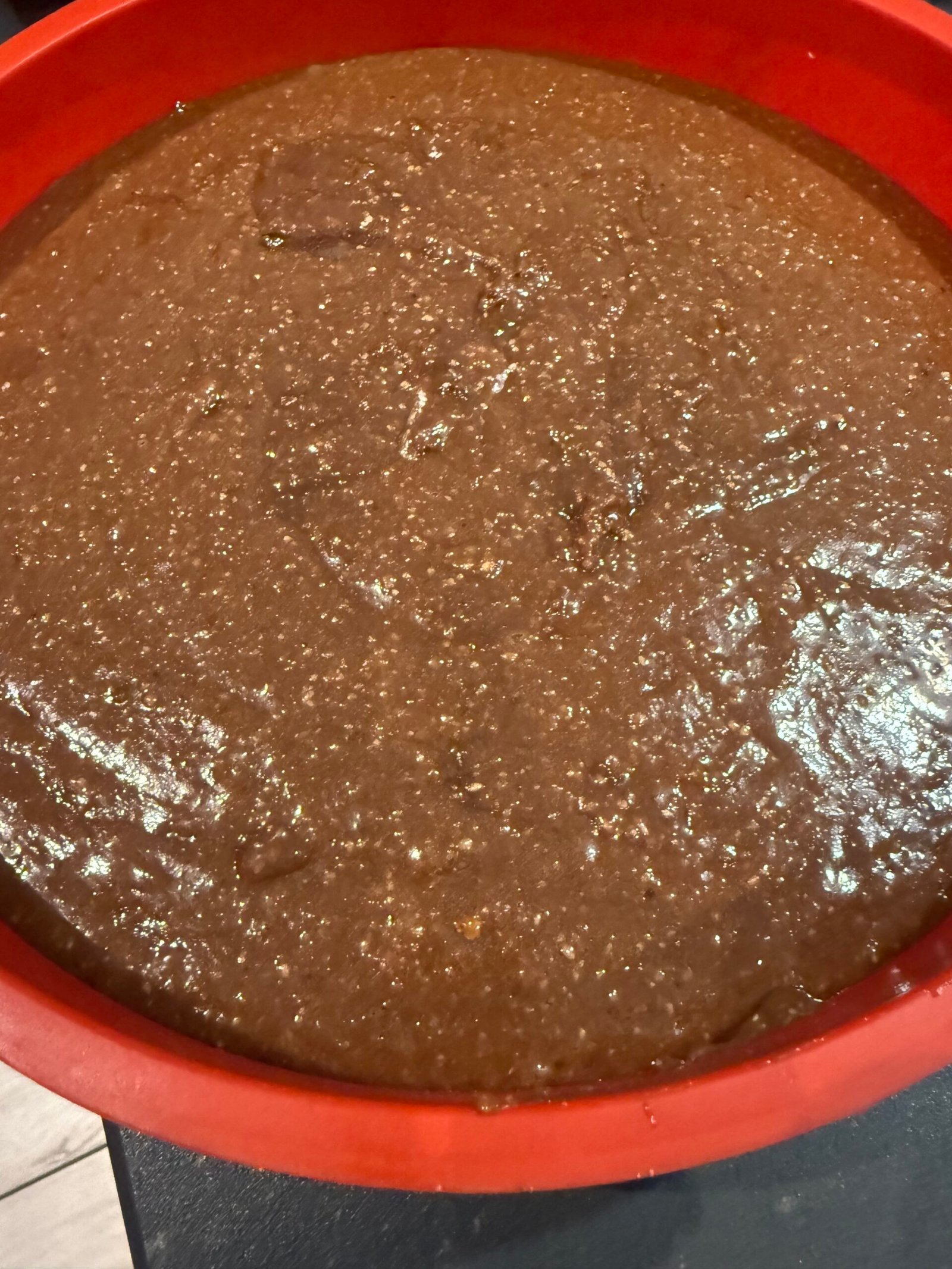 Versez la pâte dans un moule (j'utilise un moule rond en silicone de 25 cm)