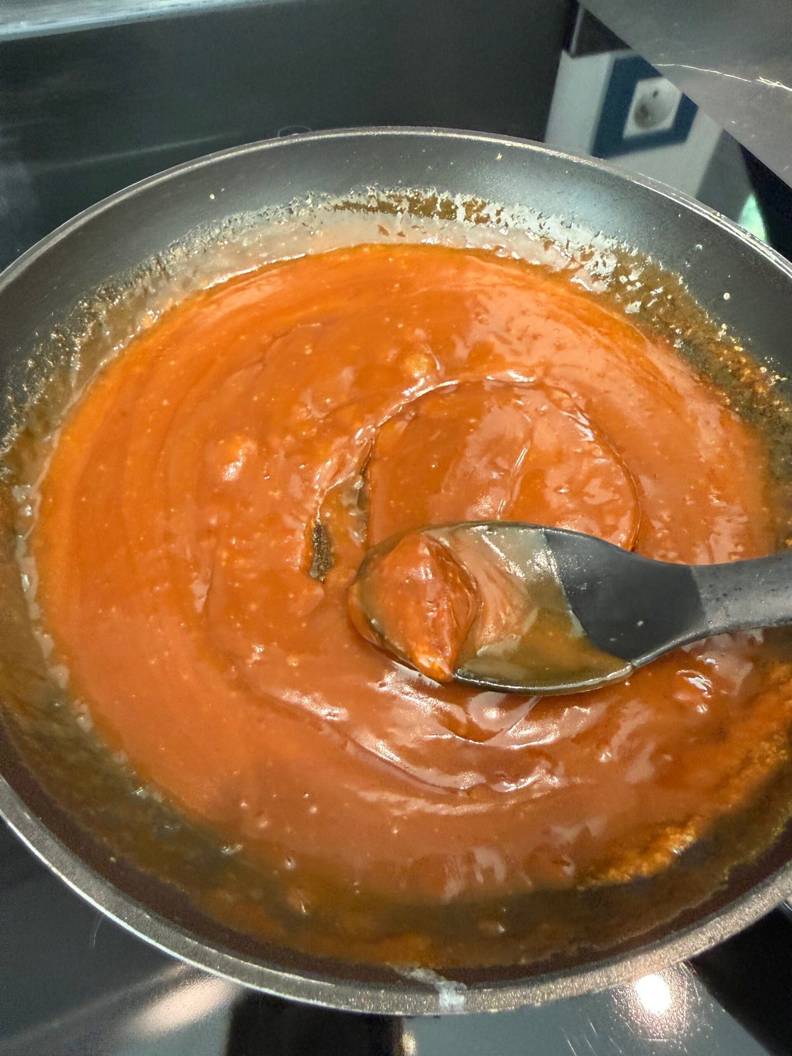 Ajoutez la maïzena diluée, c’est ça qui donne la texture oncteuse.