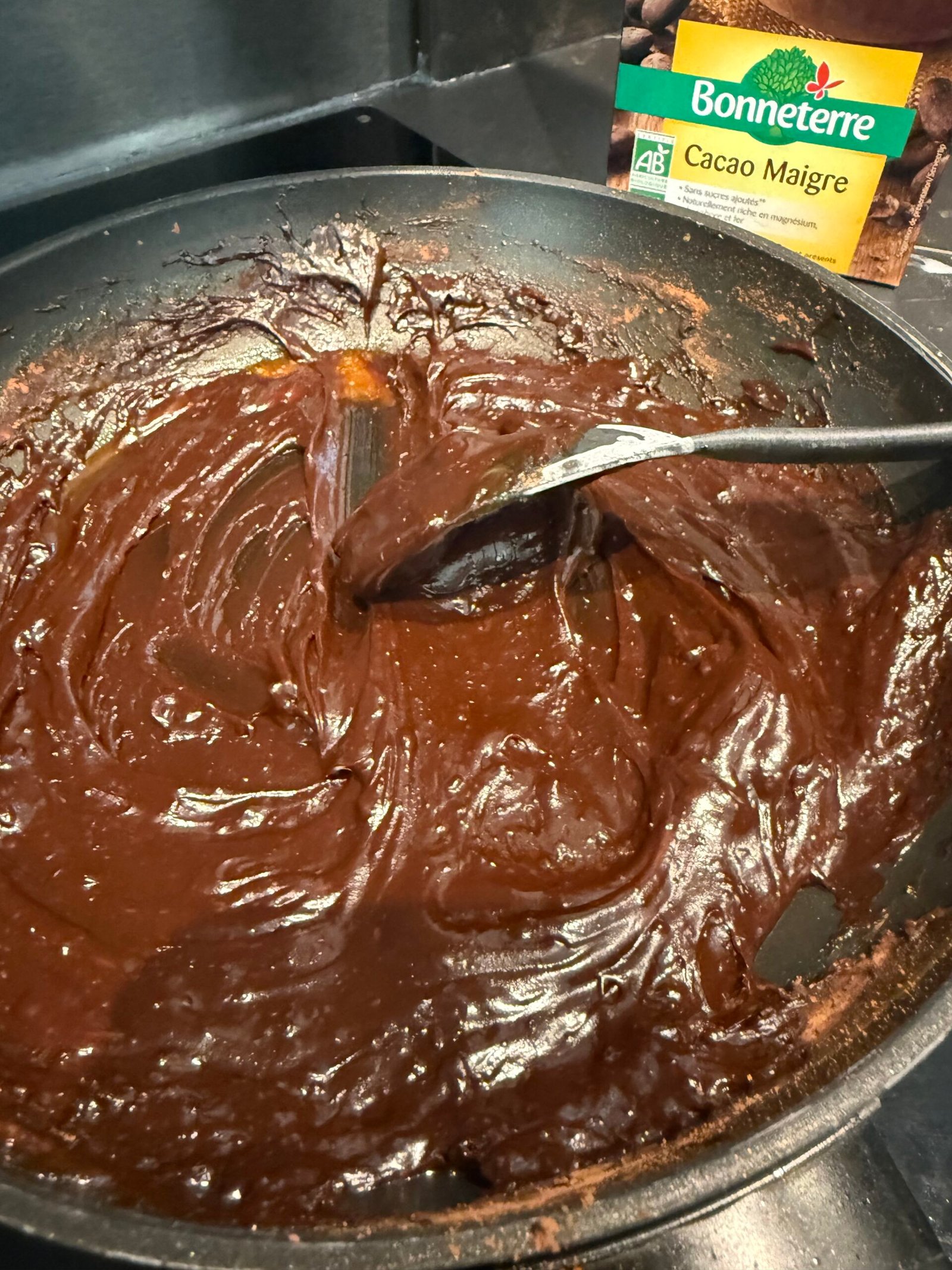 Hors du feu, ajoutez les 4 cuillerées à soupe de cacao en poudre et mélangez à nouveau