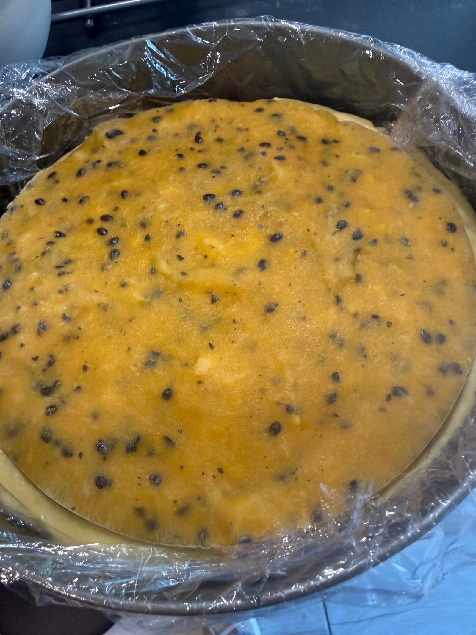 Couler l'insert mangue/passion dans le cercle à pâtisserie, sur du papier sulfurisé. Laisser refroidir puis mettez au congélateur au moins 2 heures.