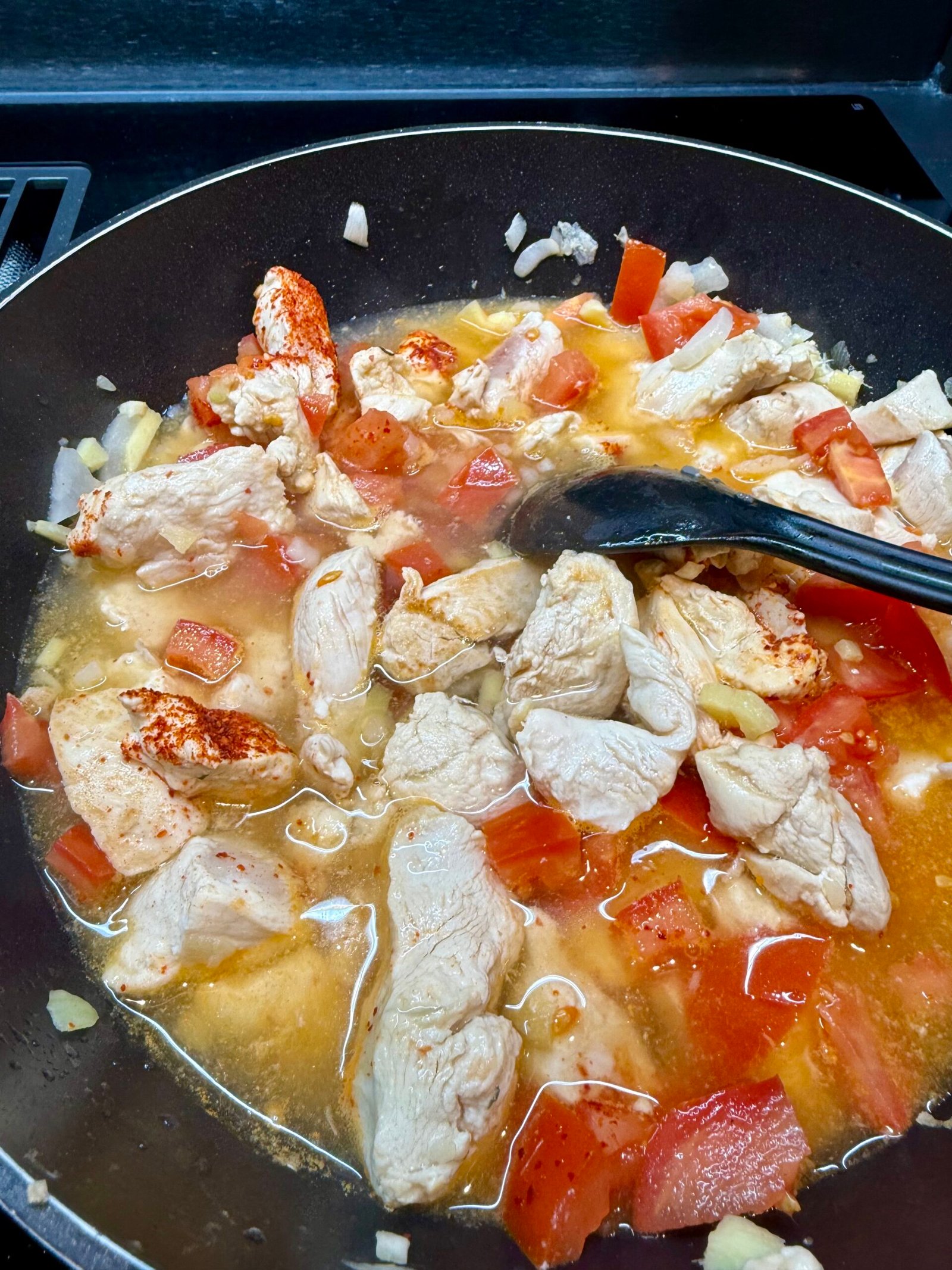 Saisir la viande : Faites chauffer l'huile dans une grande sauteuse. Ajoutez le poulet et faites-le revenir à feu vif jusqu'à ce qu'il commence à dorer.