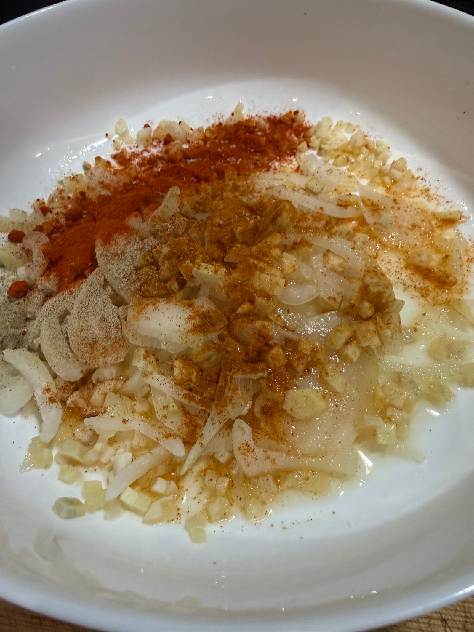 Ajoutez le sel, le poivre, le paprika, l’huile et le jus de citron. Mélangez.