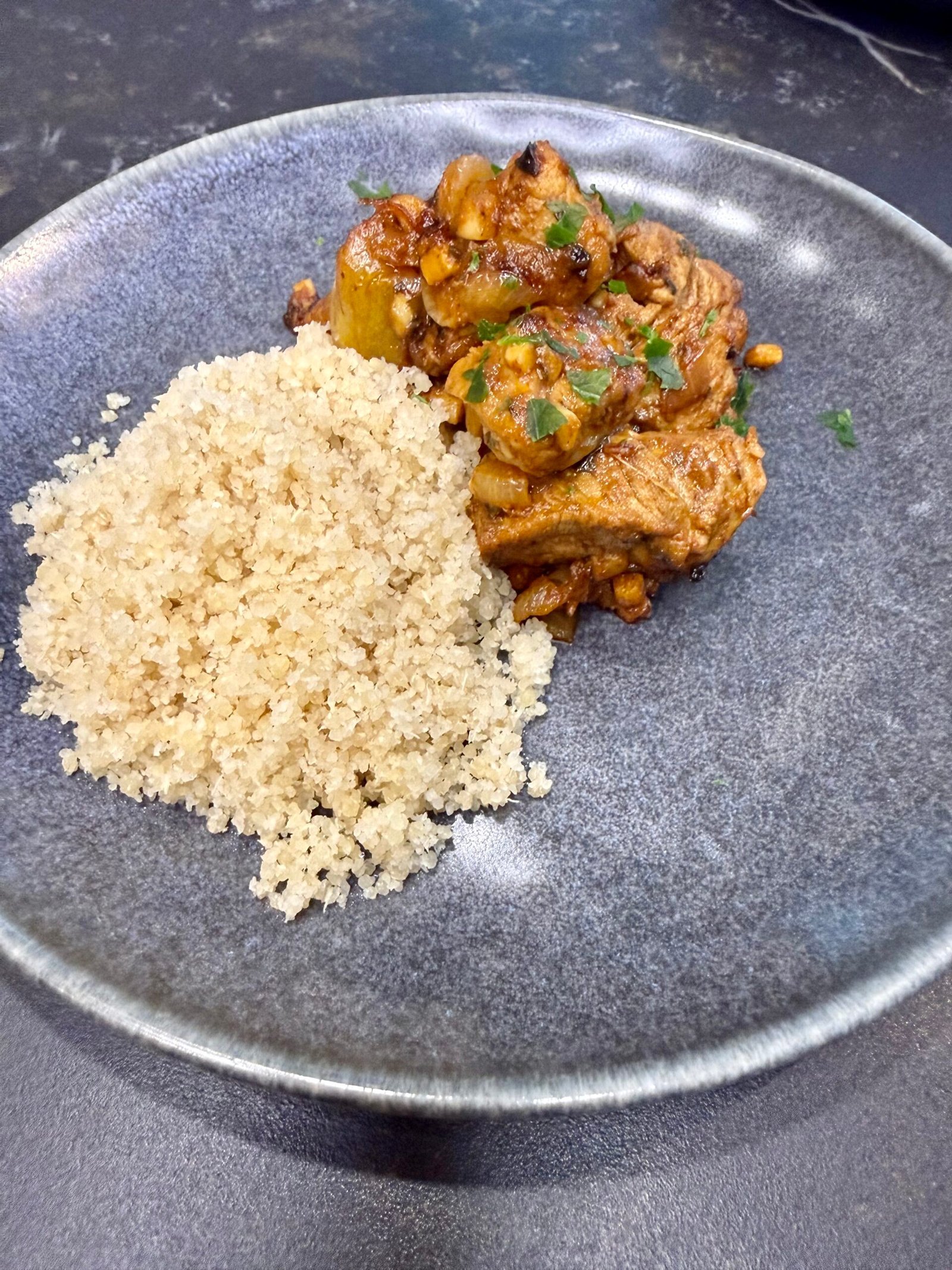 Le porc grillé du Bénin est un classique des villages du Sud, où l’on cuisine la viande au feu de bois. La recette repose sur une marinade au tamarin qui apporte une légère note acidulée typique de la région. On y ajoute du piment et de l’ail donnent qui donnent une belle saveur à la viande. La cuisson au grill donne une croûte dorée très appréciée mais vous pouvez tout à fait le cuire dans une poêle très chaude. Les morceaux resteront tendres grâce au repos dans la marinade. Ce plat se sert souvent avec du gari (semoule de manioc). Il accompagne aussi les sauces tomates locales. Ce plat peut se préparer facilement à la maison en restant fidèle à la tradition, mais la cuisson et le goût ne seront pas les mêmes à la poêle. Mais la recette sera naturellement sans gluten.